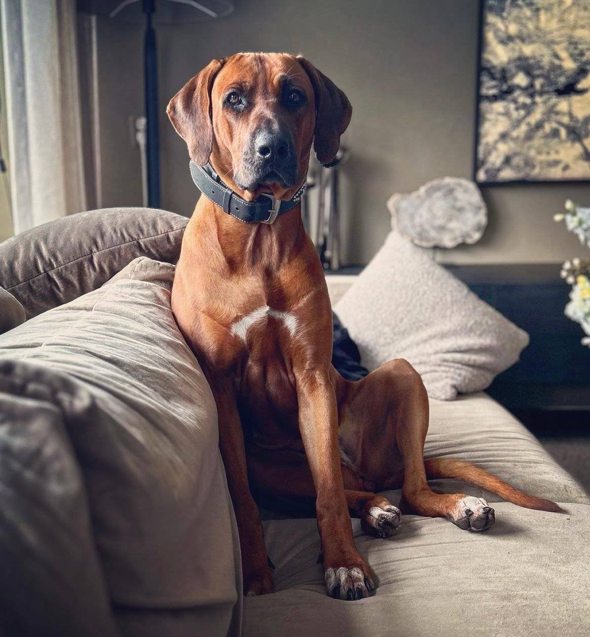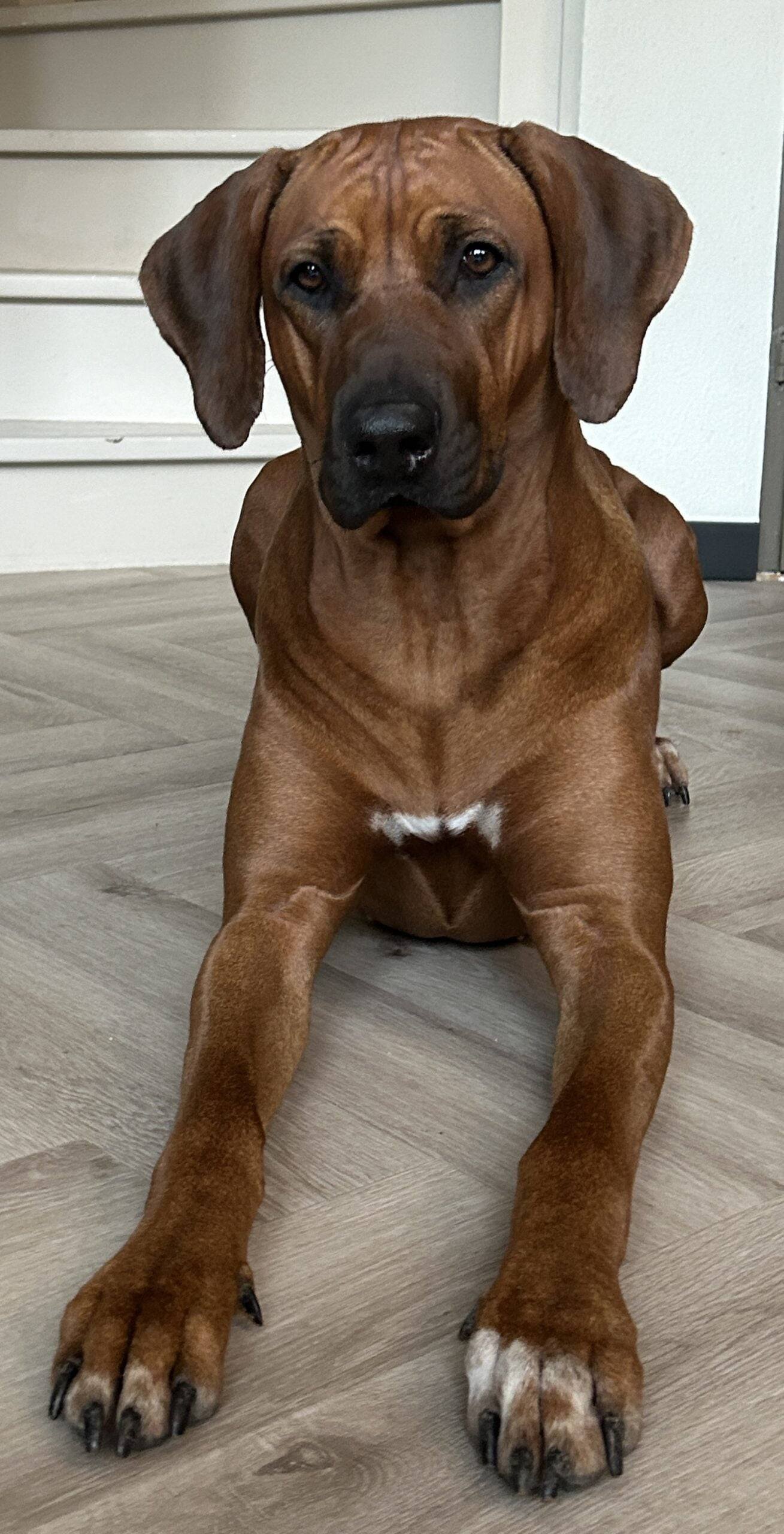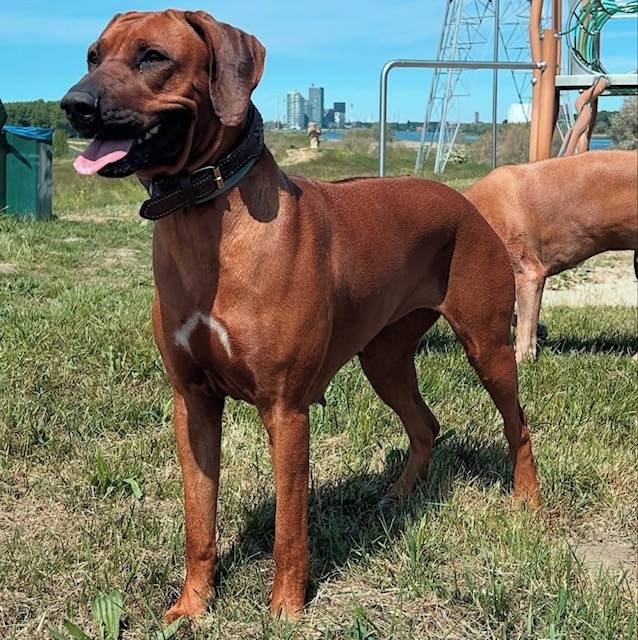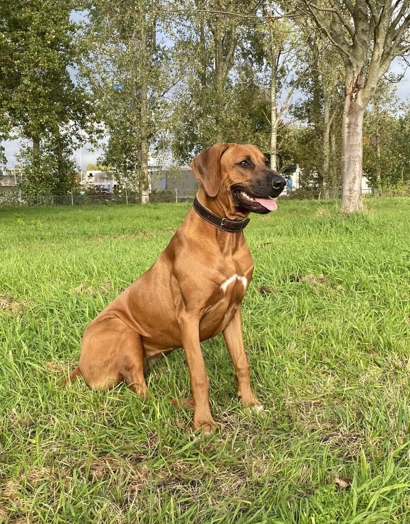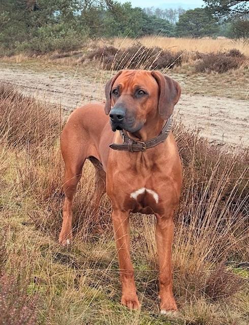 Aya is geboren op 19-02-2022. Ze is ontzettend lief voor ons gezin maar gereserveerd naar vreemden (typisch ridgeback). Als ze je eenmaal in haar hart heeft gesloten is het een grote schat en voor kinderen is ze altijd super lief. Buiten is ze erg actief en houdt van rennen, vooral door het zachte zand van de duinen of hoog gras. Er zit ook wel jachtinstinct in. Zwemmen vindt ze in de zomer ook heerlijk (niet echt typisch ridgeback) Ze luistert goed en ligt, als ze voldoende beweging heeft gehad het liefst lekker bij je op schoot op de bank. Kom je hier ongevraagd naar binnen? Dan denk ik niet dat Aya daar heel blij mee is 😉 Het is een hele fijne hond waar wij heel veel plezier van hebben.